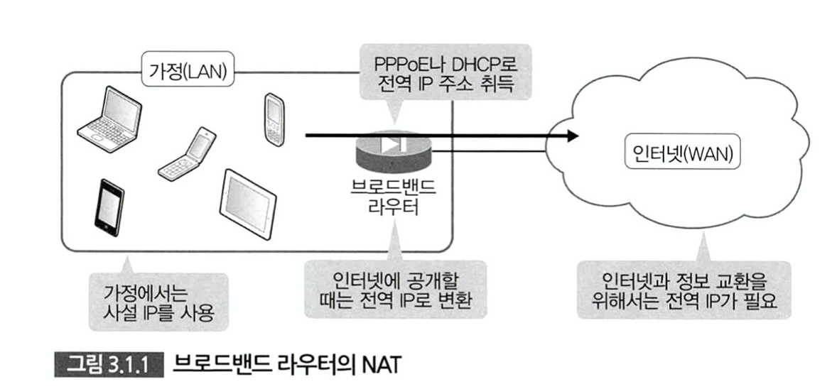 - 내부에서는 사설 IP를 쓰고, 외부랑 통신할 때 NAT를 해서 공인 IP로 통신