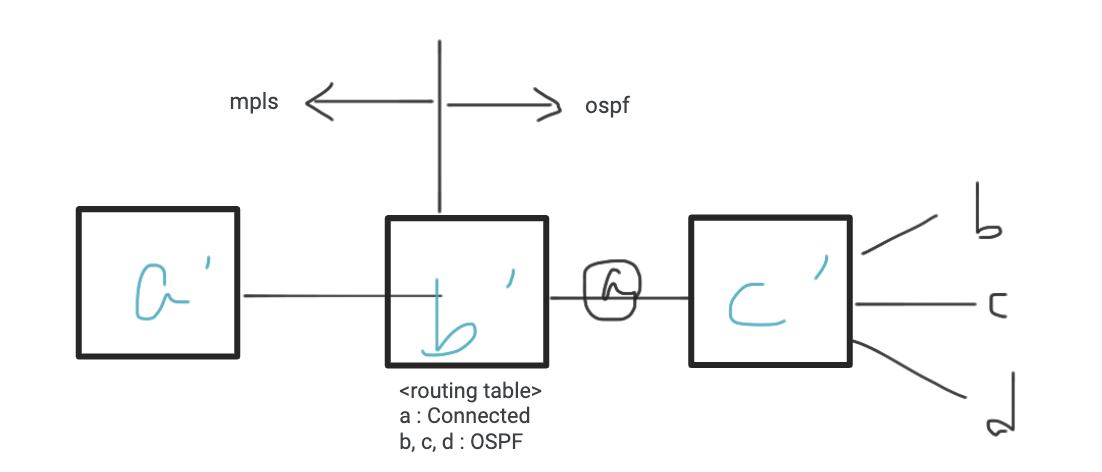 - 즉, A라는 네트워크를 a' 라우터가 connected로 가지고 있다면, Label을 3번을 달고 다른 라우터들에게 전달함.