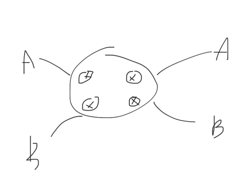 2-1. 아래 사진처럼 중간에 provider network를 통해서 통신을 함. 단, A는 A끼리만 통신하고, B는 B끼리만 통신을 함.