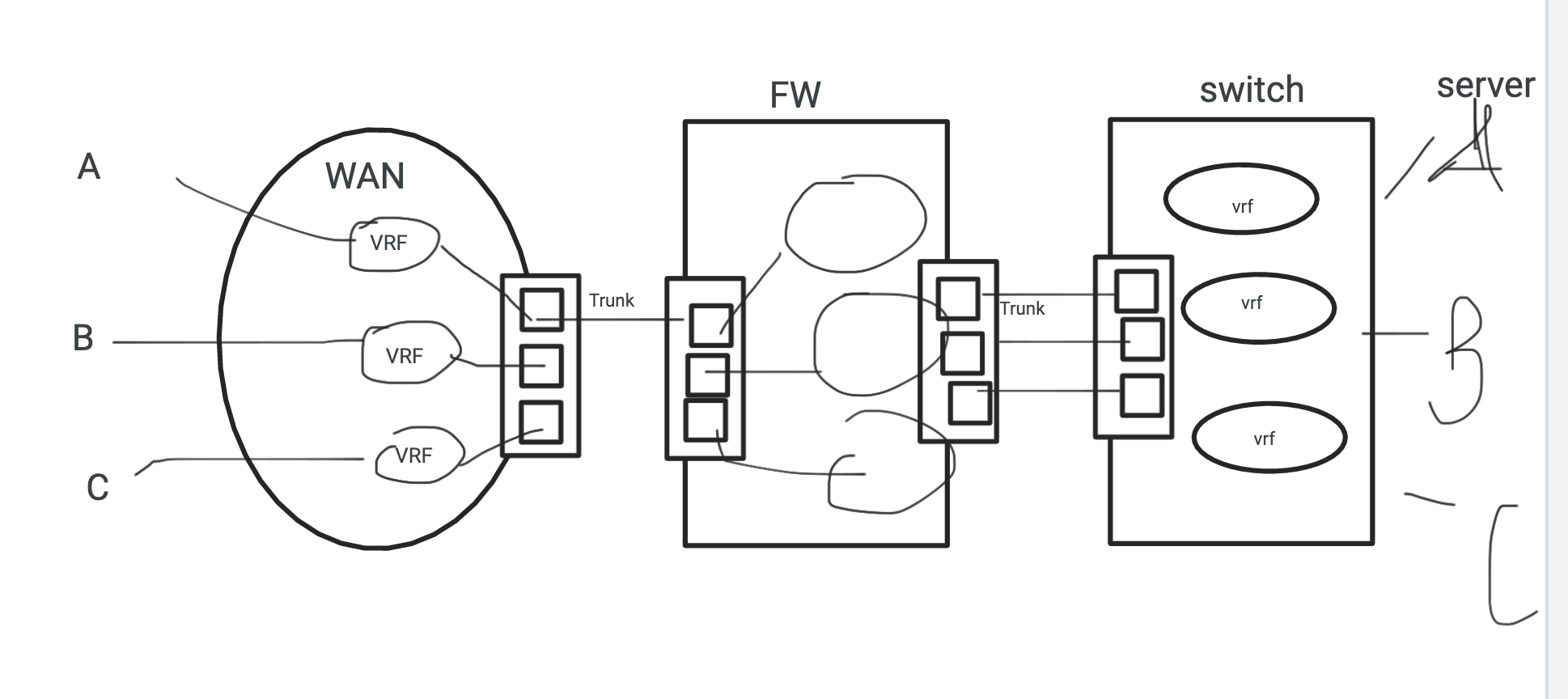 ex. VRF 로 A, B, C를 나눔. A는 A, B는 B로 넘겨줘야 함. 이걸 어떻게 하느냐?