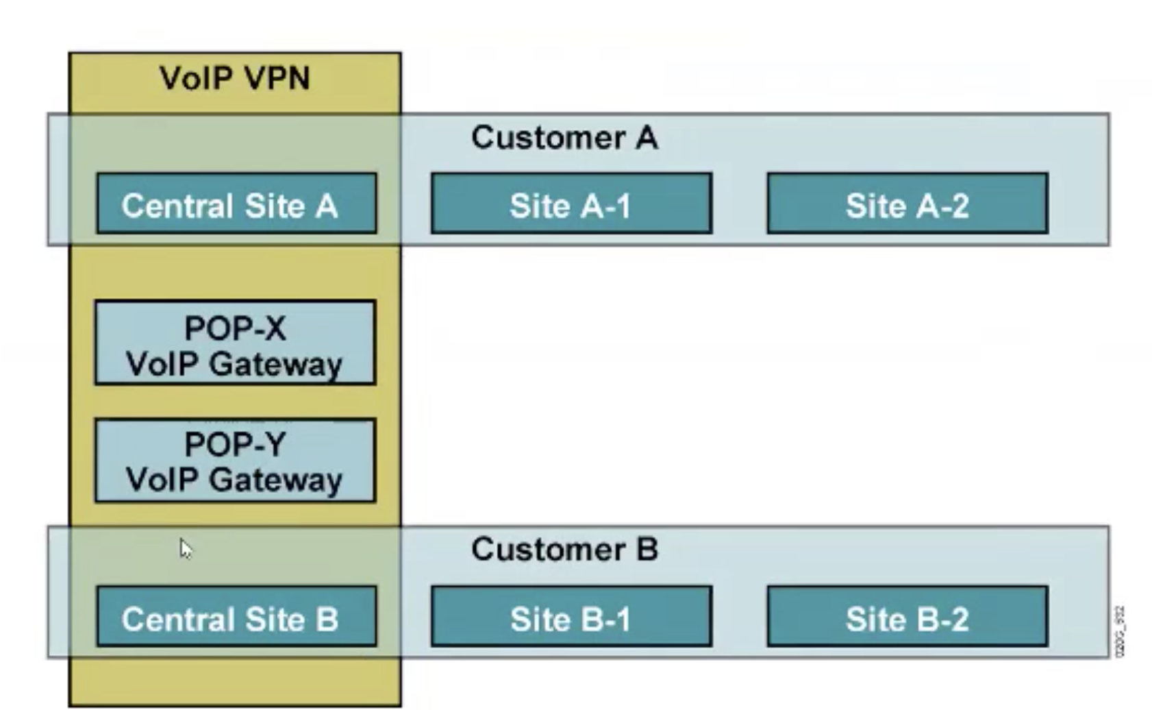 - A는 A랑 통신할 수 있어야하고, B는 B랑 통신할 수 있어야 함. A 본사와 B 본사는 service provider의 VoIP VPN을 통해 서로 간에 통신을 할 수 있음. 그 이외는 A-B가 통신하면 안됨.