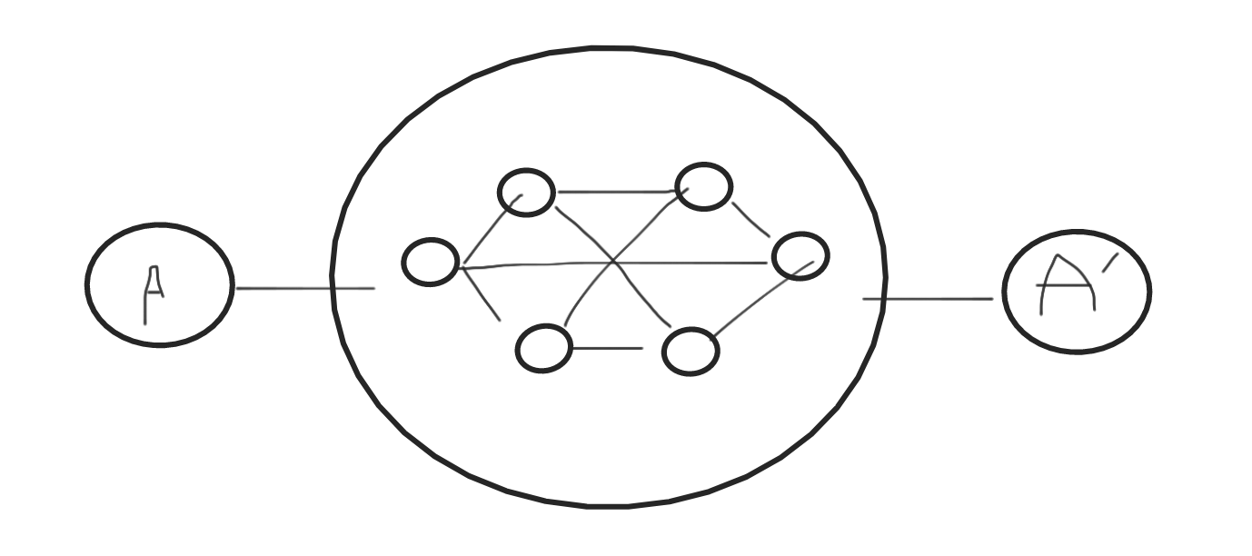 - p to p : A -> A'으로 통신을 할 때, provider network와 라우팅 프로토콜을 돌리기 때문에 최적 경로를 찾을 수 있음.