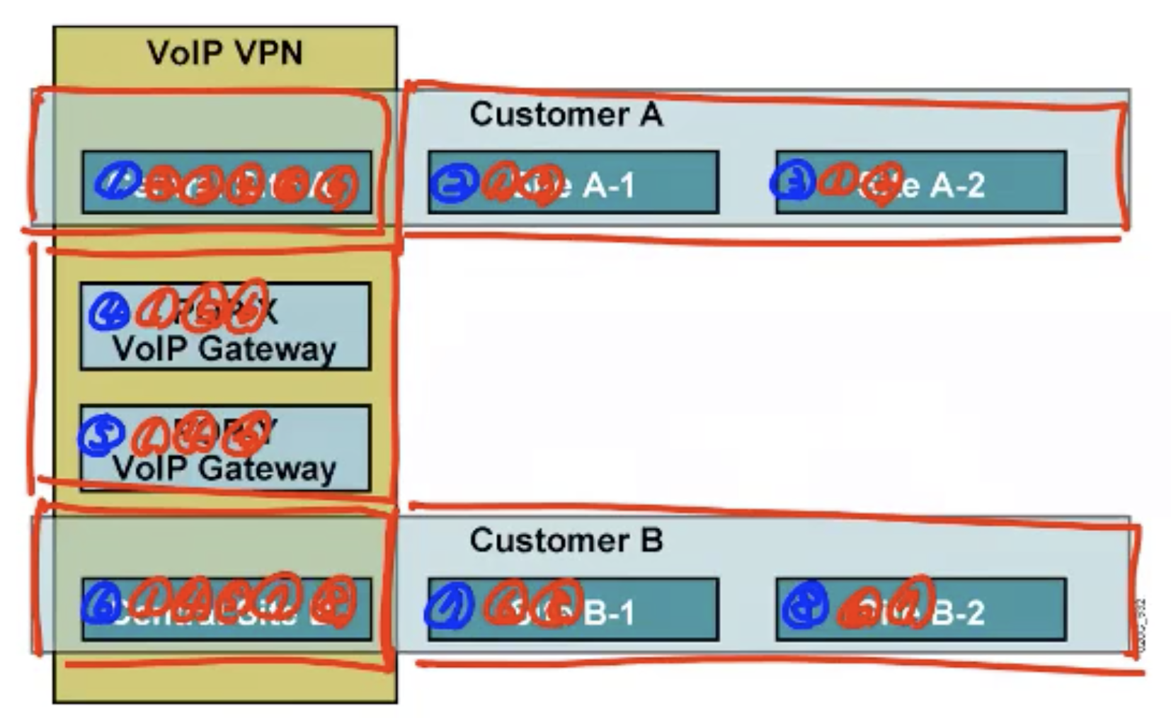 하나의 VRF가 여러 개의 VPN에 속할 수 있음.
