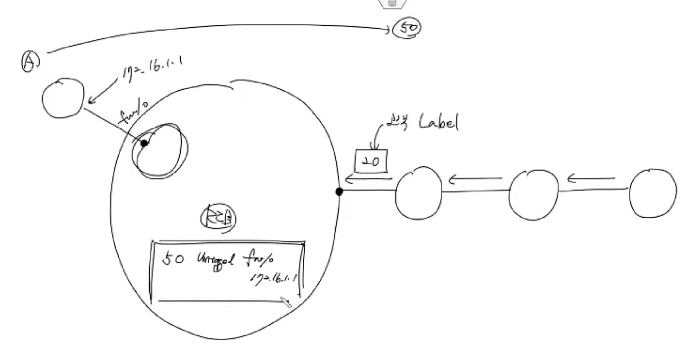 근데 검정 인터페이스(20번이 들어오는 것)는 글로벌 인터페이스 이고, fast 0/0는 vrf의 인터페이스인데, 라우팅 테이블은 vrf, 글로벌이 서로 달라서 못보내는데, mpls는 어떻게 포워딩이 될까???