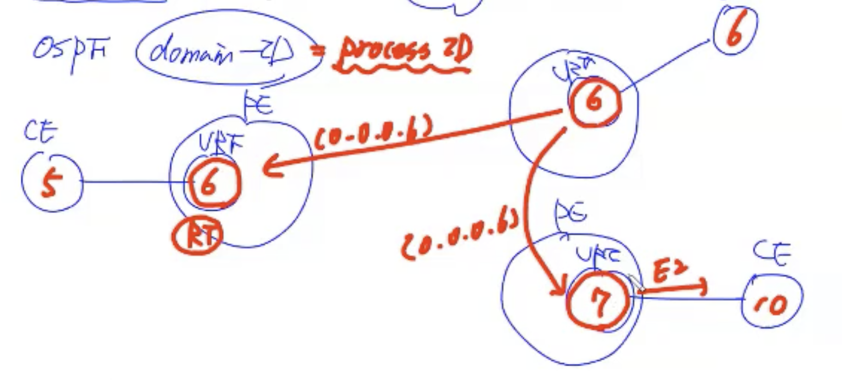 고객의 process id는 모르고, vrf의 process id를 자신의 도메인으로 세팅해서 다른 vrf로 전달.