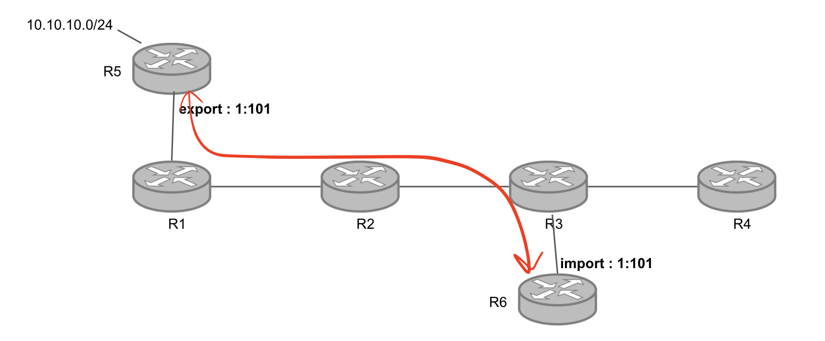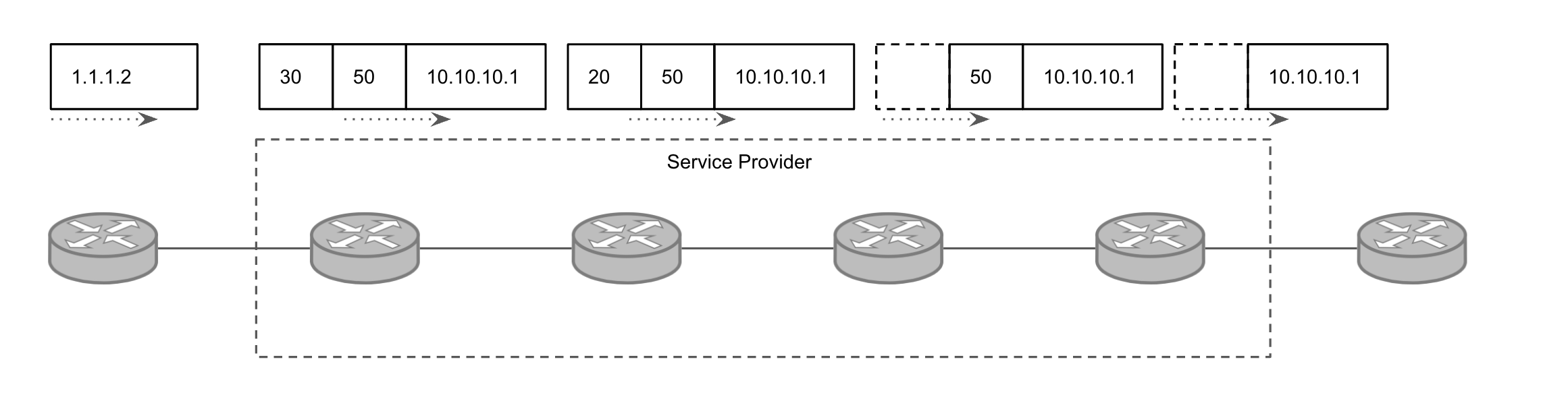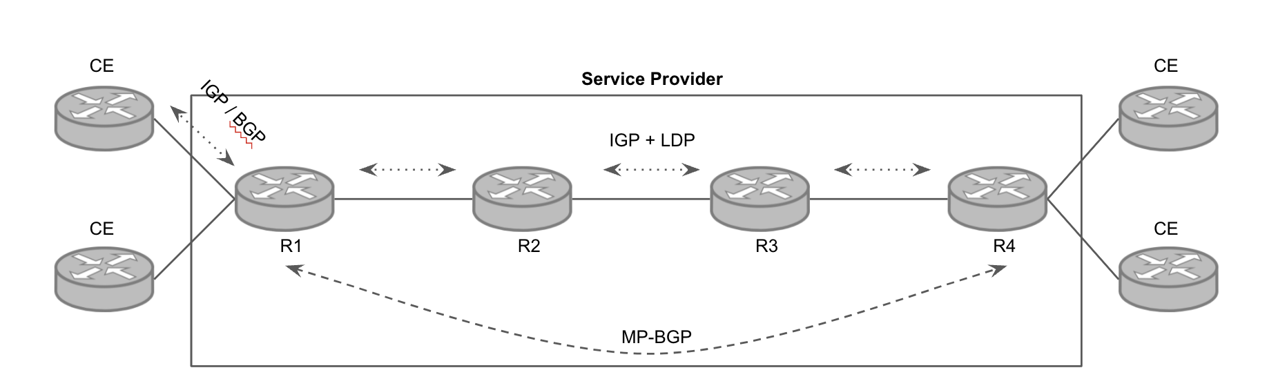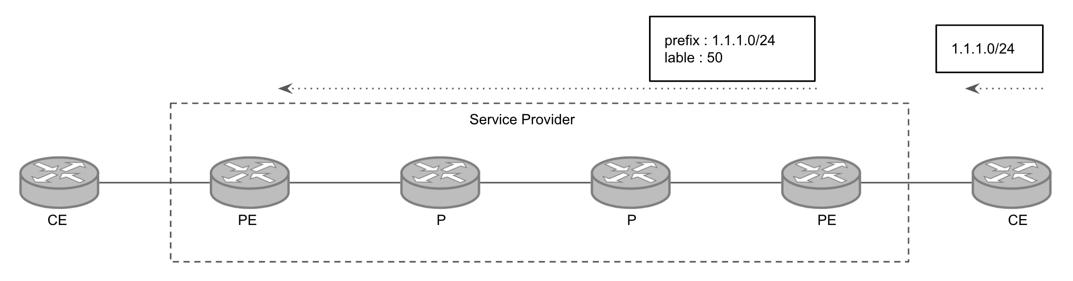 - ISP 내부에서 MPLS VPN의 패킷이 전송되는 순서