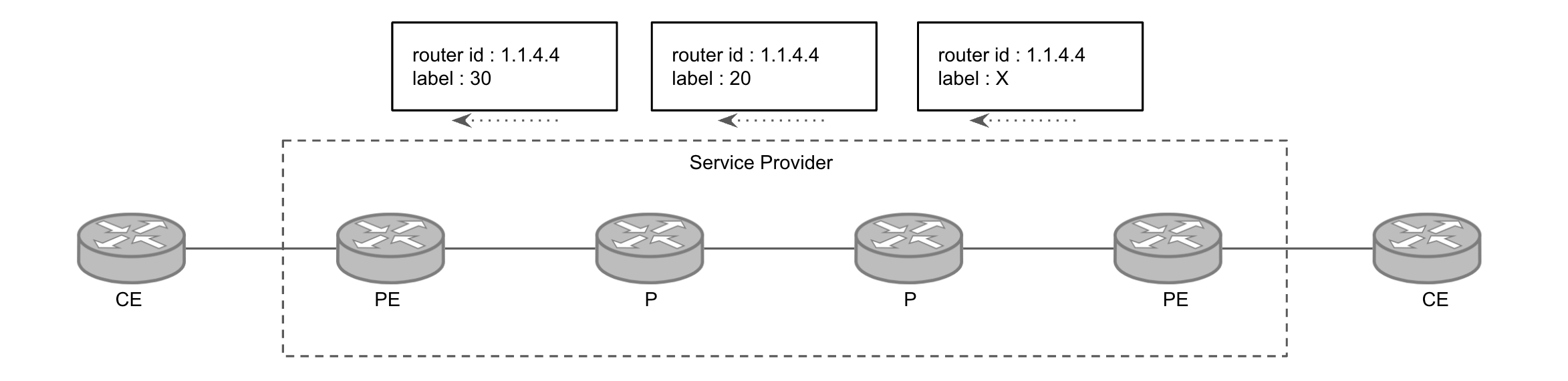 - 모든 P 라우터들은 이 라벨만을 참조