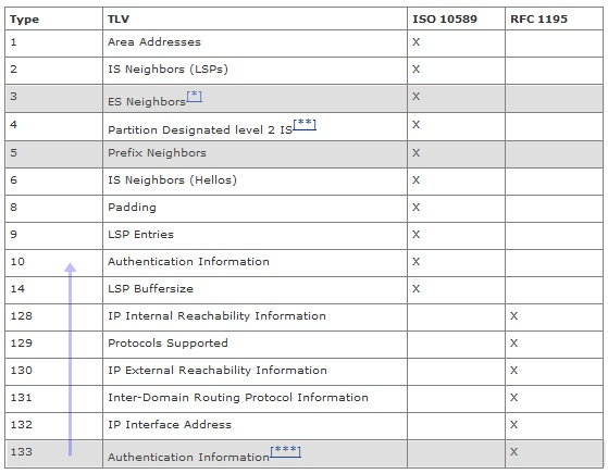 IS-IS는 TLV 매개변수를 사용하여 LSP(Link State Packets)의 정보를 전달