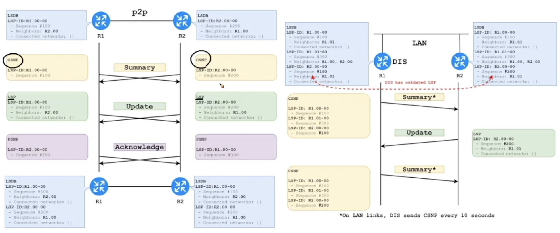 - DIS가 LSP로 전달을 해주고, 잘 받았다고 PSNP(Ack)정보를 던져줌