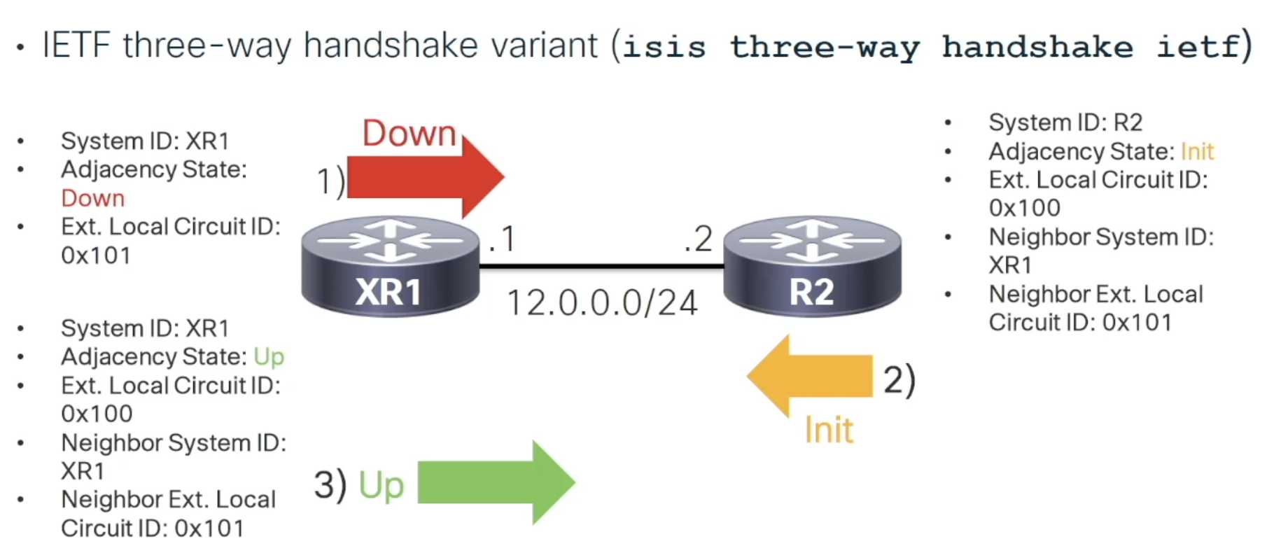 point to point Adjacency States - Three way handshakes