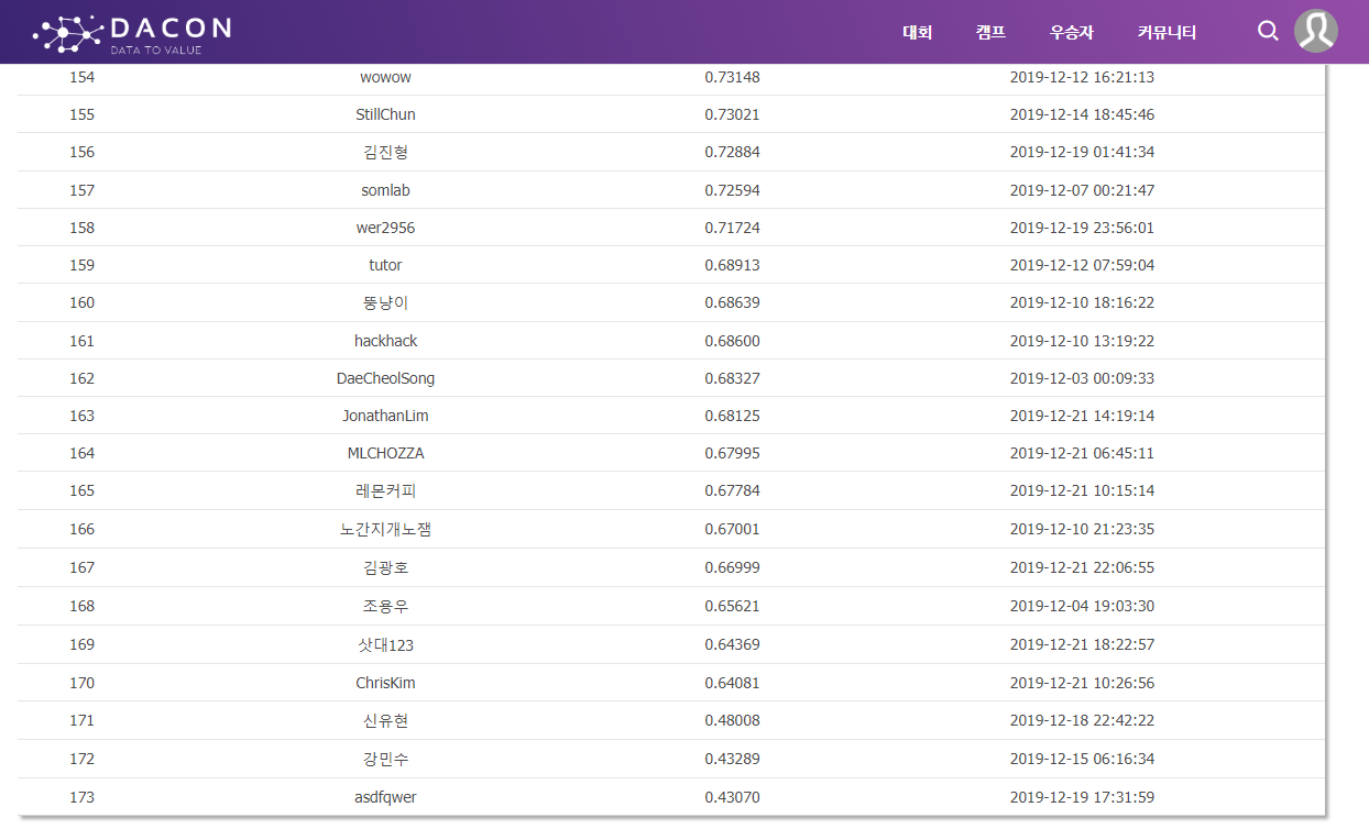 | DACON 금융문자 분석 경진대회 도전2 (0) | 2019.12.27 |