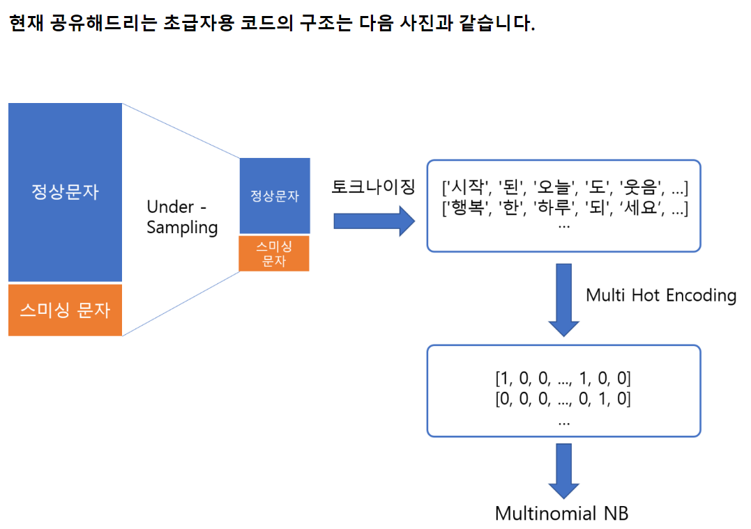 Navie Bayes는 전통적인 텍스트 분류 방법이고 MultinomialNB는 다항분포 방법인데 아주 전통적인 방법을 쓰셨다.