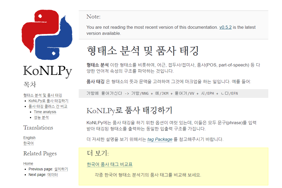 zip: 동일한 개수의 자료형을 묶어주는 함수tqdm: 진행 상황 표시tokenizer.pos(x) : 한글 텍스트의 품사를 파악해 토큰화