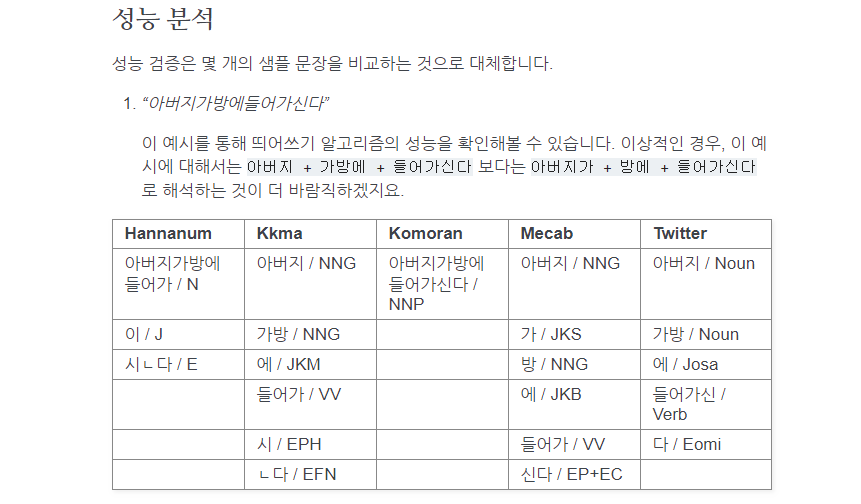 2-2. 품사 토큰화 예제: 아버지가방에들어가신다.
