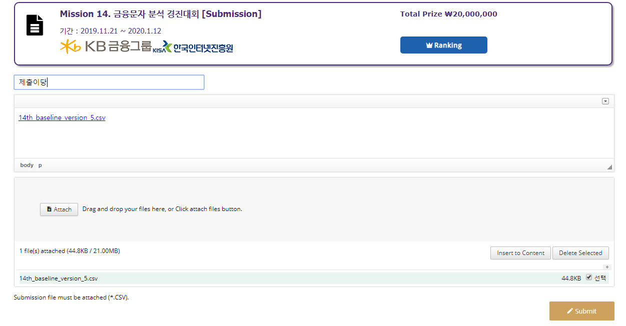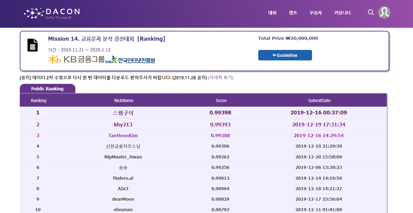 금융문자 분석 경진대회를 한다고 한다. 총 상금 2000만원😎