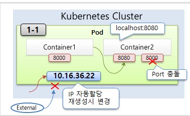 - 하지만 파드 내 컨테이너끼리 포트가 겹치면 안 됨