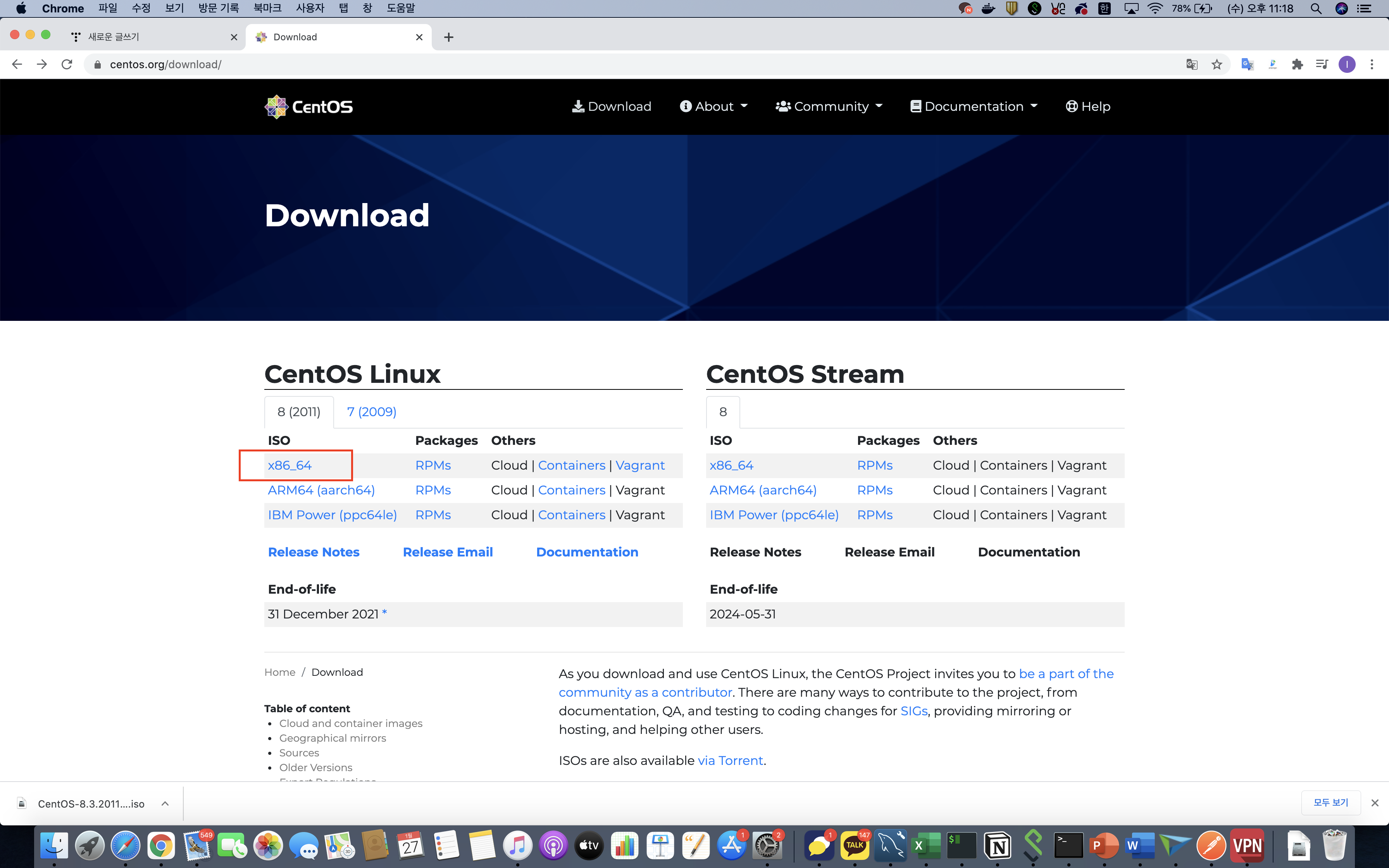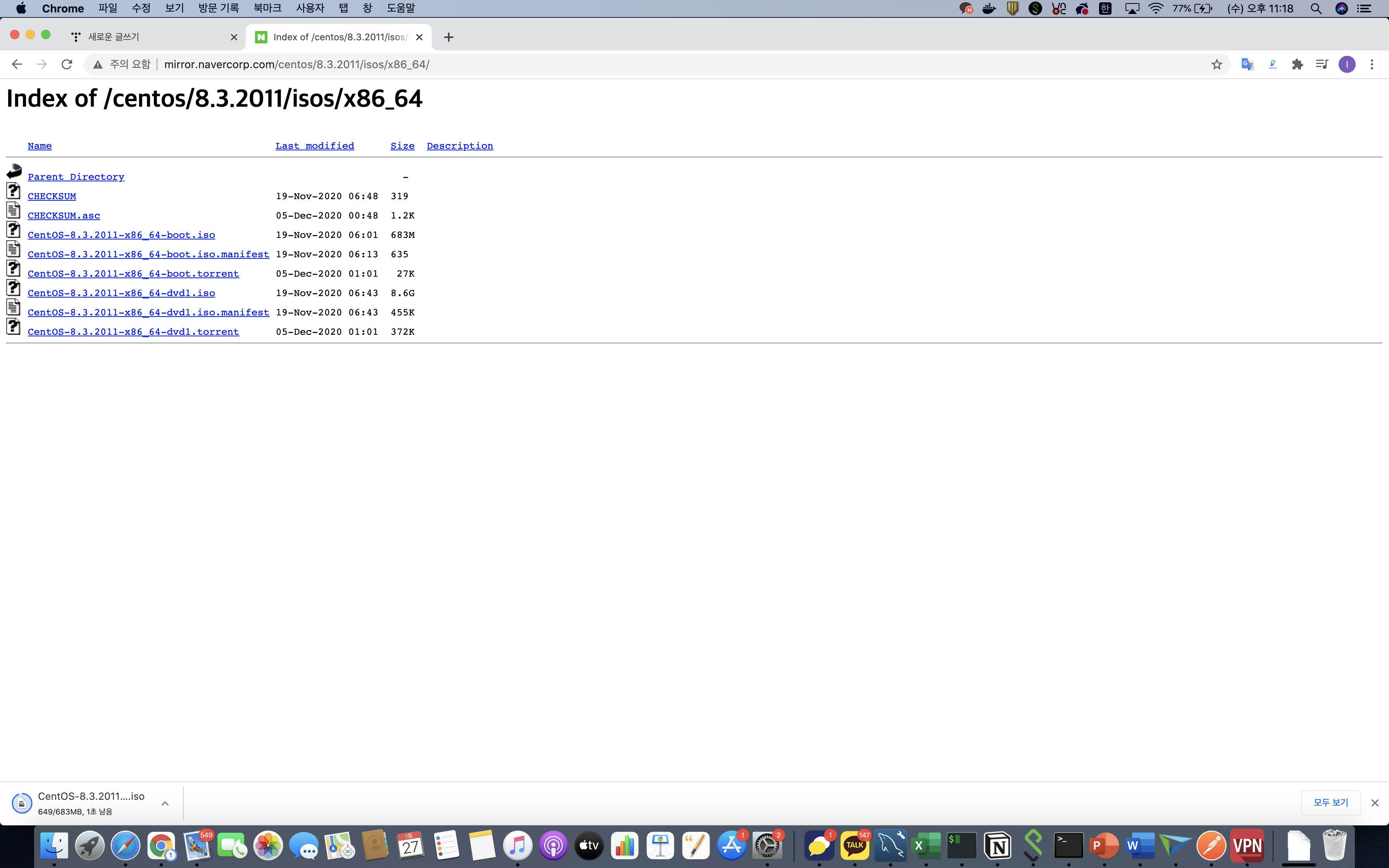 다운로드 링크 : mirror.navercorp.com/centos/8.3.2011/isos/x86_64/mirror.navercorp.com/centos/8.3.2011/isos/x86_64/CentOS-8.3.2011-x86_64-boot.iso