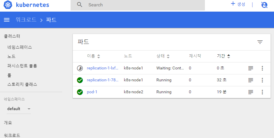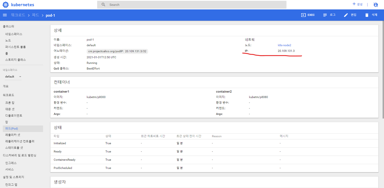생성중인 pod-1 클릭