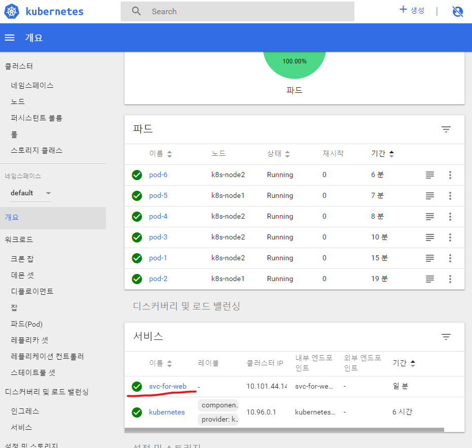 서비스 생성 - svc-for-web