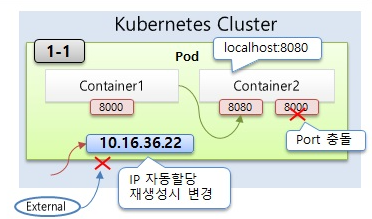 - 한 파드내에서 컨테이너의 포트는 같을 수가 없음