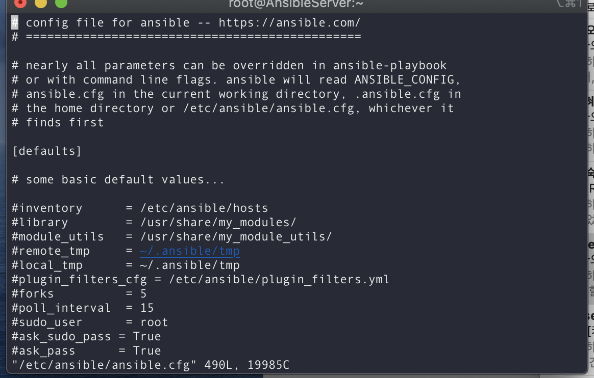 환경 설정 파일 : vi /etc/ansible/ansible.cfg