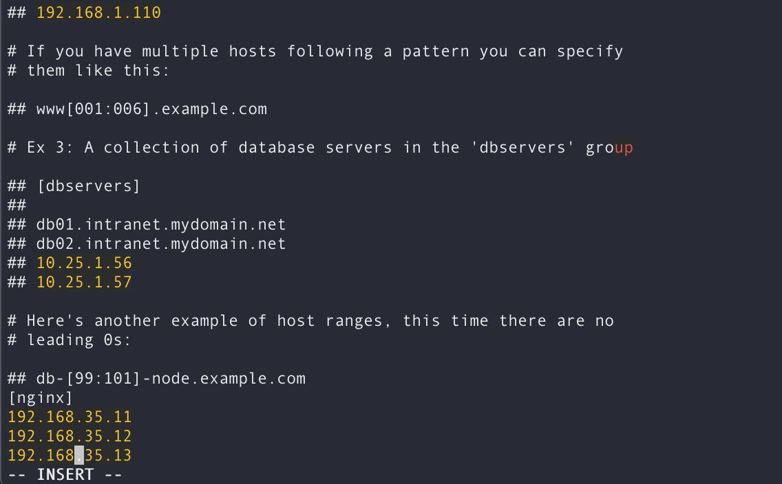 vi /etc/ansible/hosts