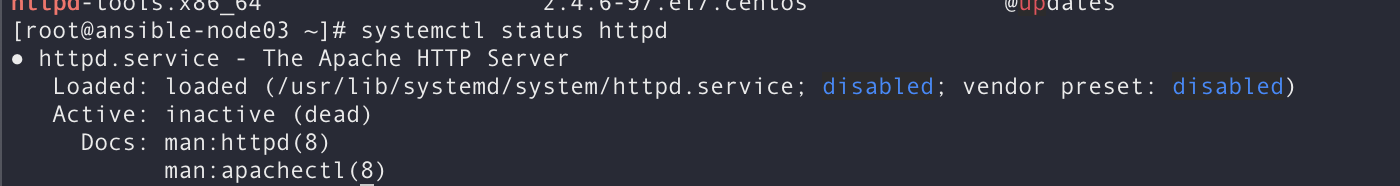 노드에서도 잘 설치되어있는 것을 확인 할 수 있음. 아직 httpd가 실행되지는 않음