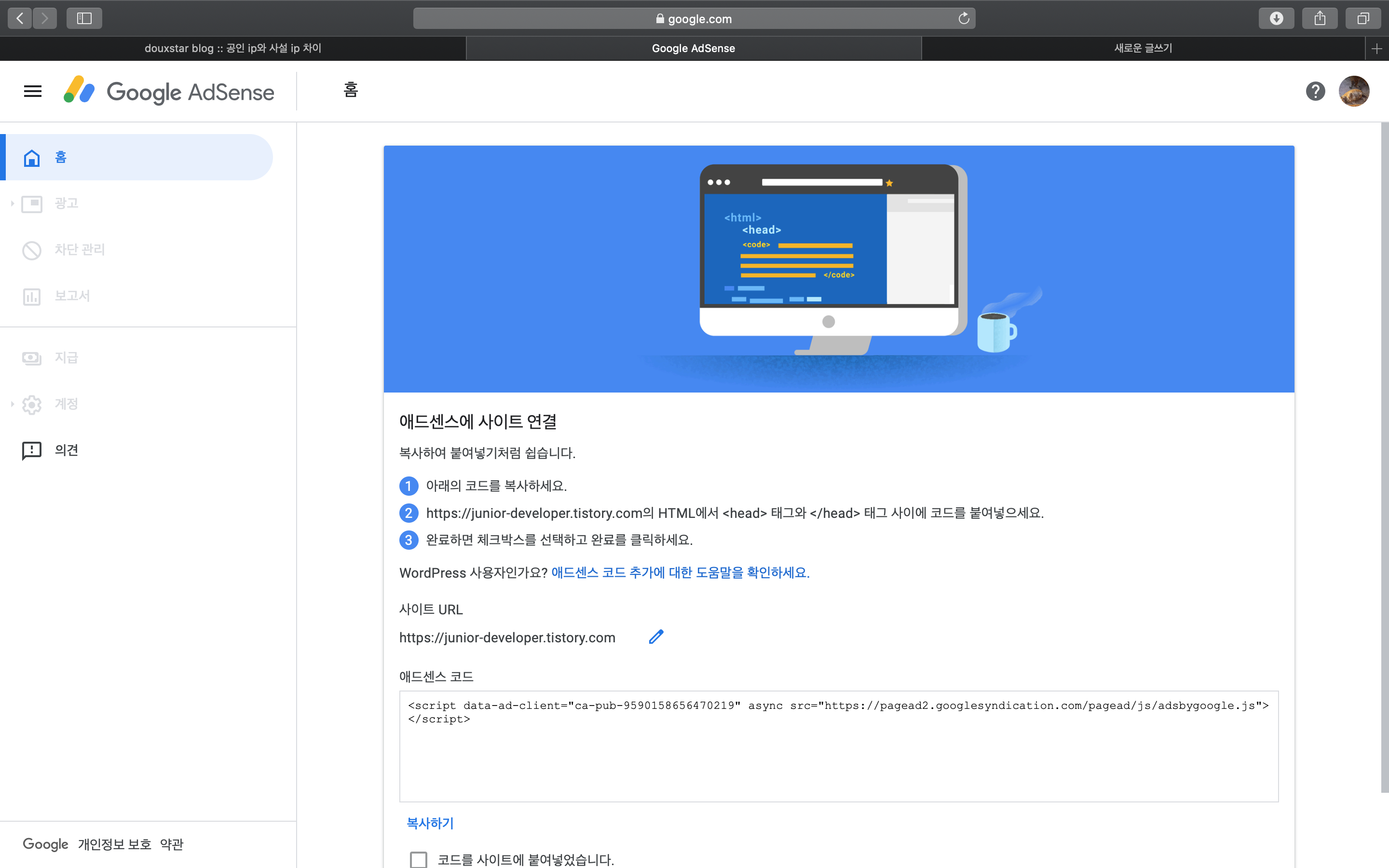 | 구글 애드센스 2탄 (0) | 2020.02.24 |
