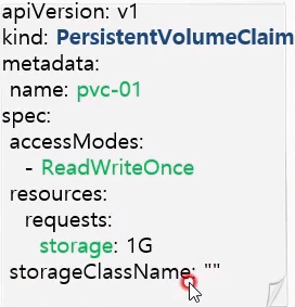 - storageClassName: ""인데 이는 현재 만들어진 PV중에서 선택되는 걸 의미