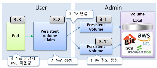 - 파드를 PV에 바로 연결하지 않는 이유는 쿠버네티스가 User와 Admin으로 영역을 나눠서 관리하기 때문
