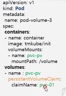 - k8s가 PVC에 맞는 PV를 연결해줌