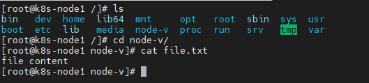 cat file.txt확인 - node1에 파일이 있으니 파드를 삭제하고 다시 만들어도 파일 내용이 그대로 있음