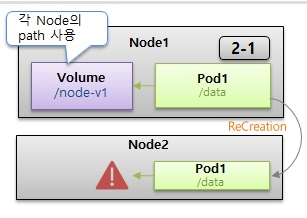 - 킹지만 파드가 node1이 아니라 node2에 만들어지면 파일 공유 불가