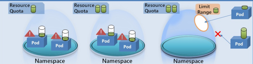 - 한 파드가 자원 사용량을 너무 크게하면 다른 파드들이 네임스페이스에 들어오지 못함