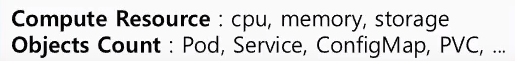 - CPU, Memory 등의 Compute Resource 외에 Object Count도 제한할 수 있으며, 버전이 업그레이드 되면서 점점 제한할 수 있는게 늘어남