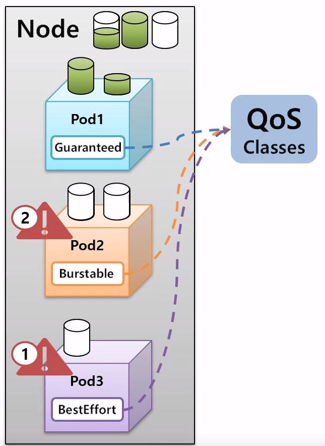 - 쿠버네티스는 앱의 중요도에 따라 이런걸 관리할 수 있도록 QoS Classes를 지원