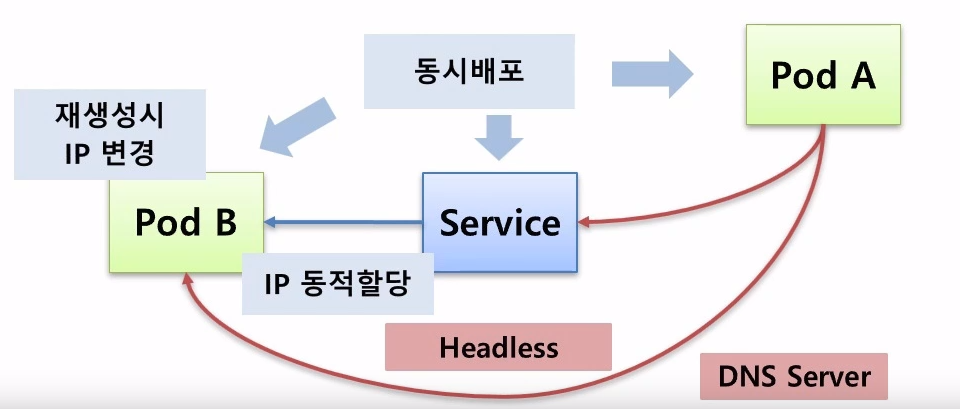 - 또 파드B가 죽어서 재생성되면 아이피가 변경될 수 있음