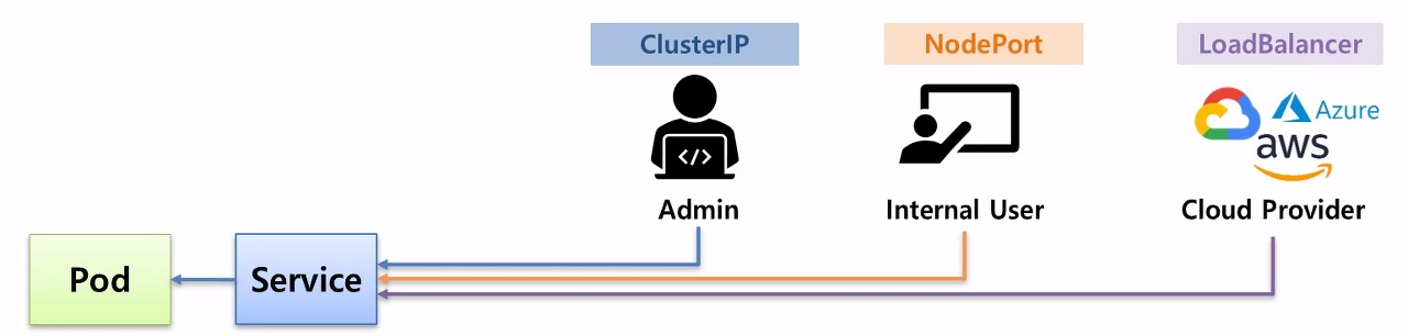 - 관리자건, 내부망 유저건, 외부망 유저건 쿠버네티스망에 특히 파드에 접근하기 위해