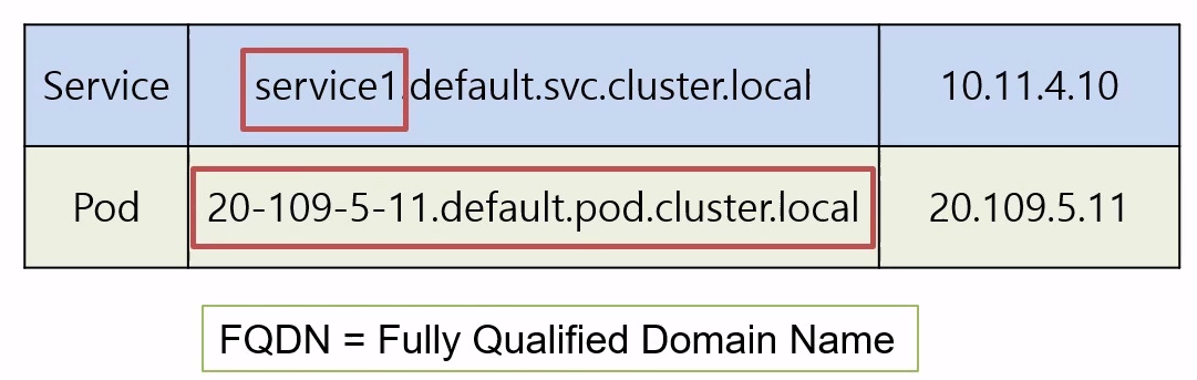 - pod의 입장에서 pod1에 접근하기 위해 아이피 주소는 필요 없고, 도메인 이름으로 접근 가능