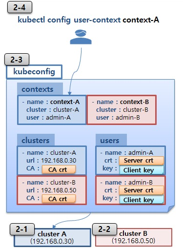 - 각 클러스터의 kubeconfig가 사용자의 kubectl에 있다면 사용자는 각 클러스터의 자원에 접근 가능