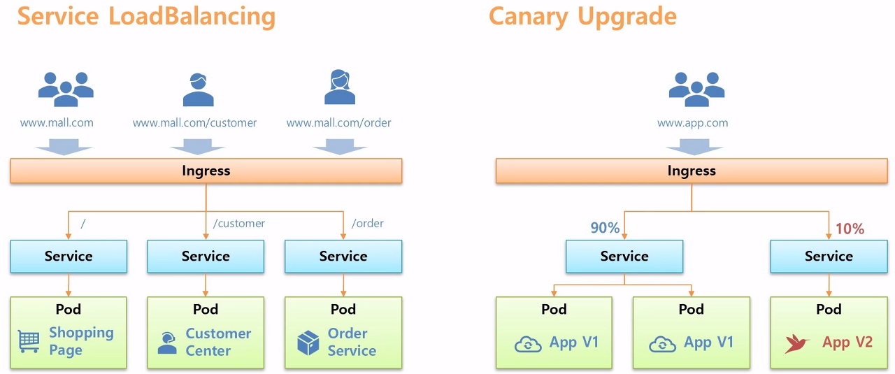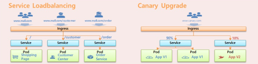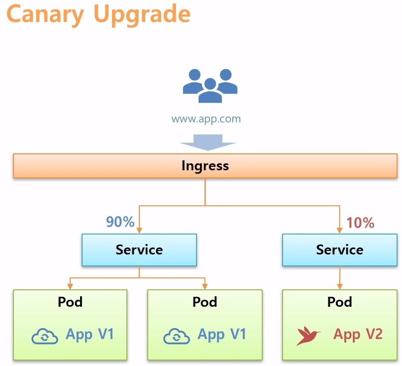 - 사용자가 Ingress에 접근했을 때 90%는 V1으로, 10%는 V2로 이동하게 할 수 있음