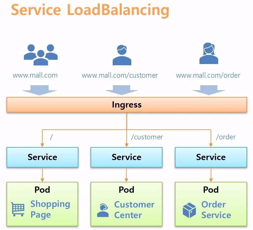 /로 들어오면 쇼핑 페이지로,/customer는 주문센터,/order는 주문 서비스로 연결 - 별도의 IP 로드밸런싱을 해주는 장비가 필요 없음