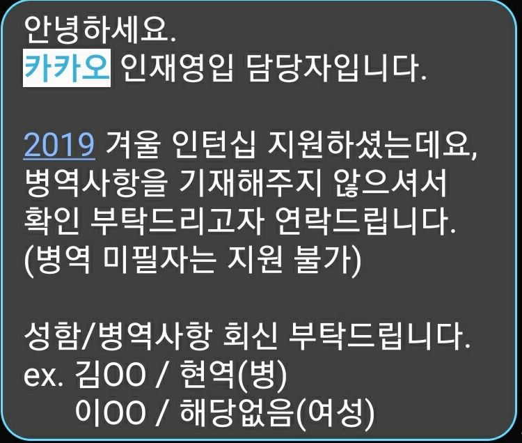 인턴 전형이 아니라 다른 전형에서 이 문자를 받은 다른 사람들은 붙었다고 하니, 내심 붙었다고 생각하고 있었다.