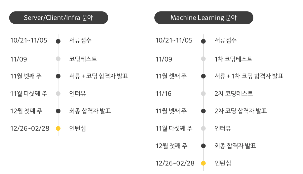 - *모집 분야 : *Server / Client(Android,iOS,Front-End) / Infra / Machine Learning