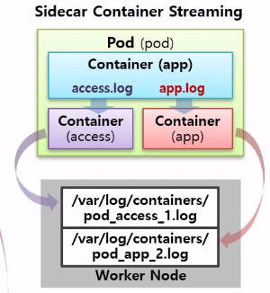 access.log,app.log가 쌓인다고 가정 - 이 로그를 stdout으로 Worker Node에 기록하면 파일이 하나로 기록되니 복잡