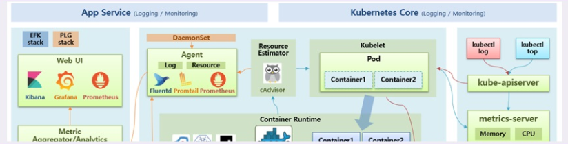 kubectl top명령어로 kube-apiserver를 통해 정보 조회 kubectl log명령어로 컨테이너 내 로그도 조회 가능