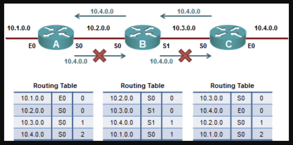 - 간단하게 말하면, A 에서 받은 정보를 A 로 광고하지 않는다.