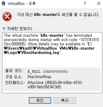 VM 시작 시 에러(E_FAIL (0x80004005) 해결 방법
