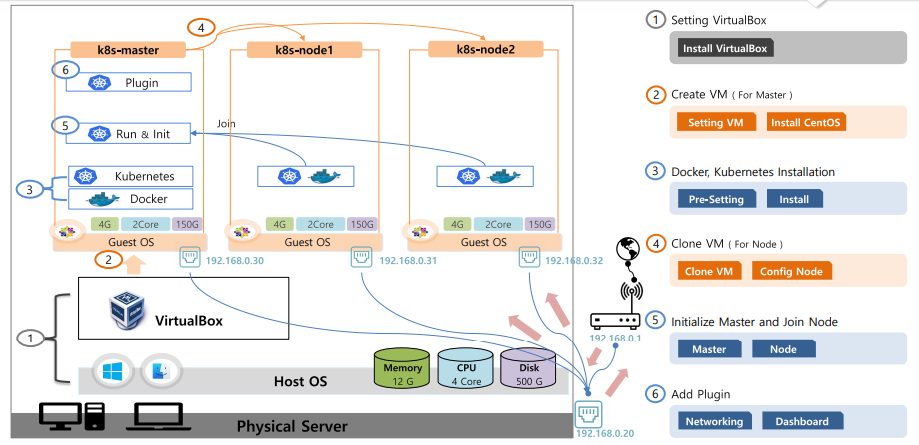- 메모리 12G, CPU 4 Core, Disk 500GB로 가정