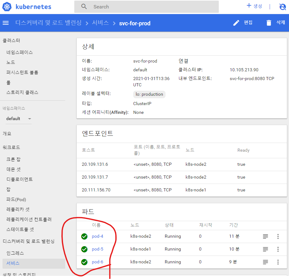 서비스 생성 - svc-for-prod